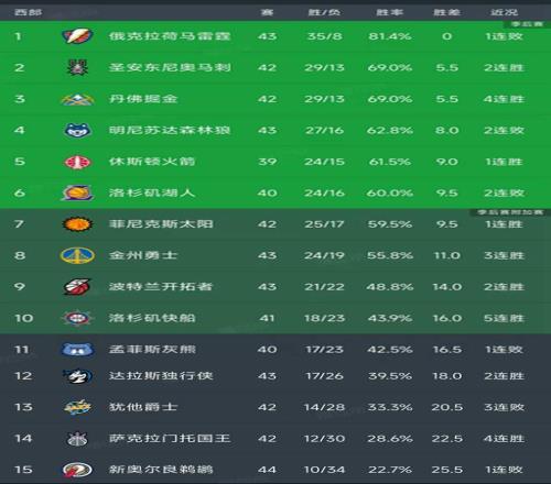 北京時間1月18日,今日的NBA常規(guī)賽結(jié)束了所有比賽,我們看看西部球隊的表現(xiàn)和最新排名變動!
